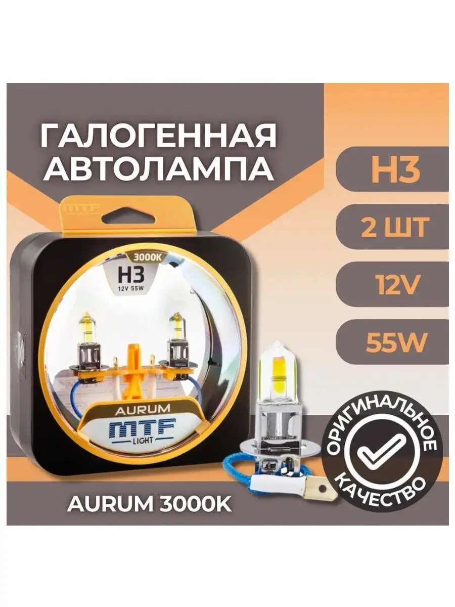 Автолампа Mtf H3 12V 55W Aurum 3000K - 2 Шт MTF Light арт. HAU1203