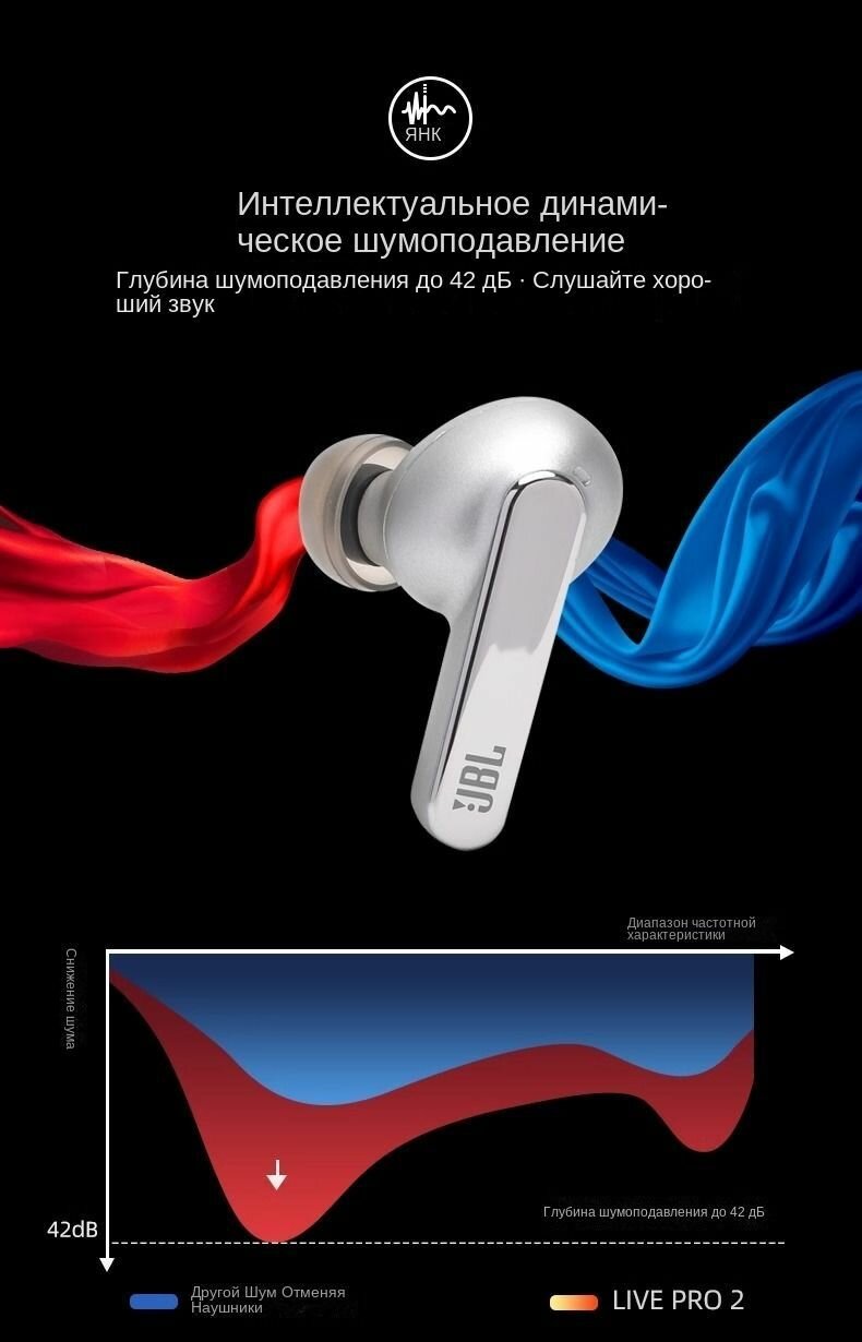 СохранитьБеспроводная Bluetooth-гарнитура JBL LIVE PRO 2 TWS true с шумоподавлением, водонепроницаемые вкладыши интересное: