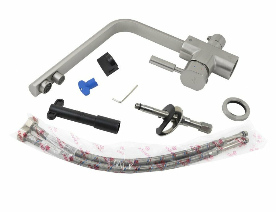 | Комплектация | смеситель - 1 шт., аэратор - 1 шт., гибкая подводка - 2 шт., крепления - 1 шт. |