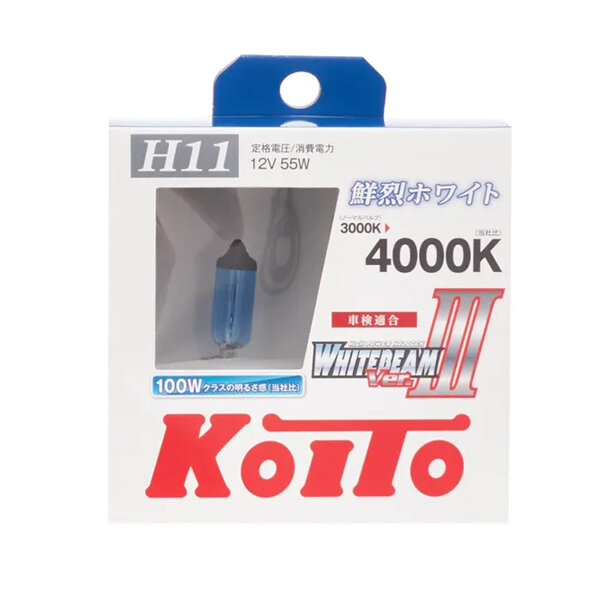 Лампа автомобильная галогенная KOITO - H11 - WhiteBeam III 4000K (12v 55w) (2 шт.)