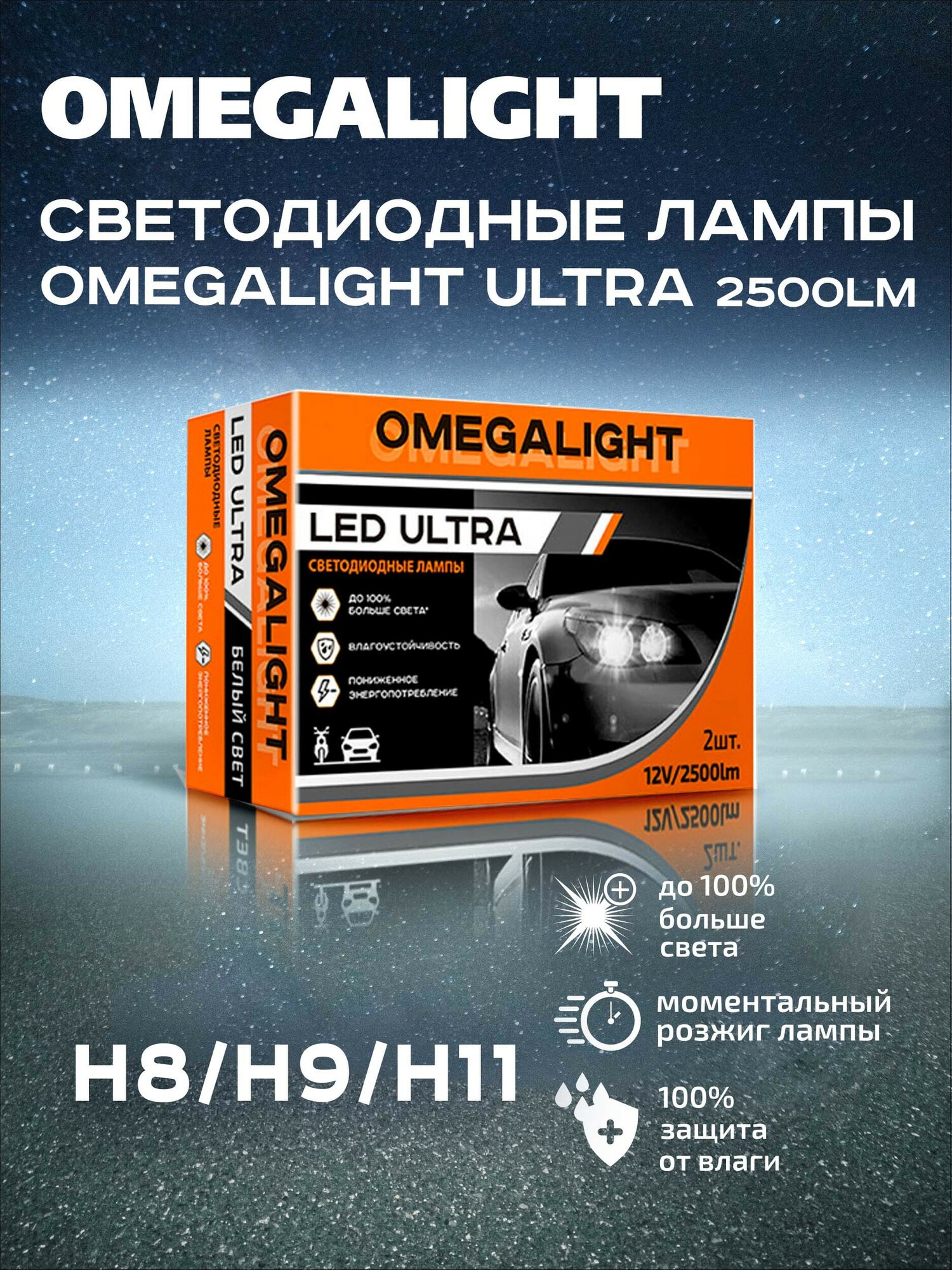 Купить Комплект ламп LED Omegalight Ultra H8/H9/H11 2500lm (2шт)