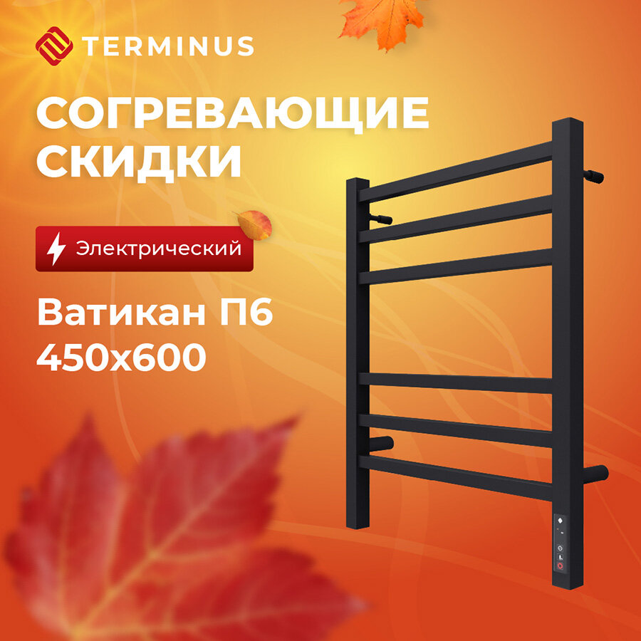 Полотенцесушитель электрический Terminus Ватикан П6 450x600, матовый чёрный 4670078527516