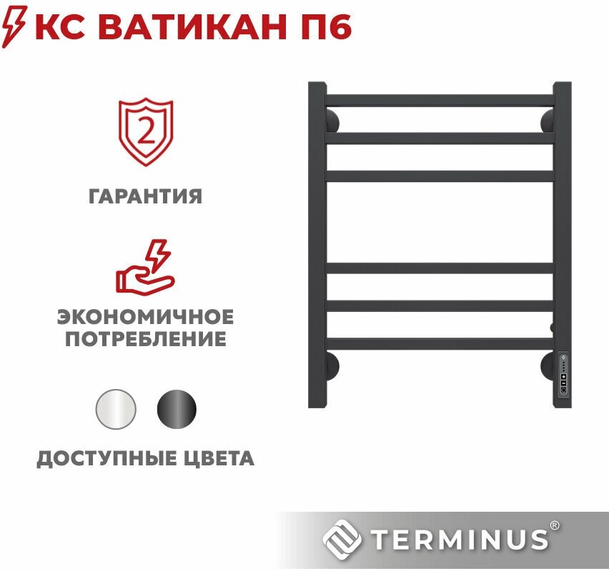 Купить Полотенцесушитель электрический черный TERMINUS (Терминус) Ватикан П6 КС 450х600 мм, гарантия 2 года