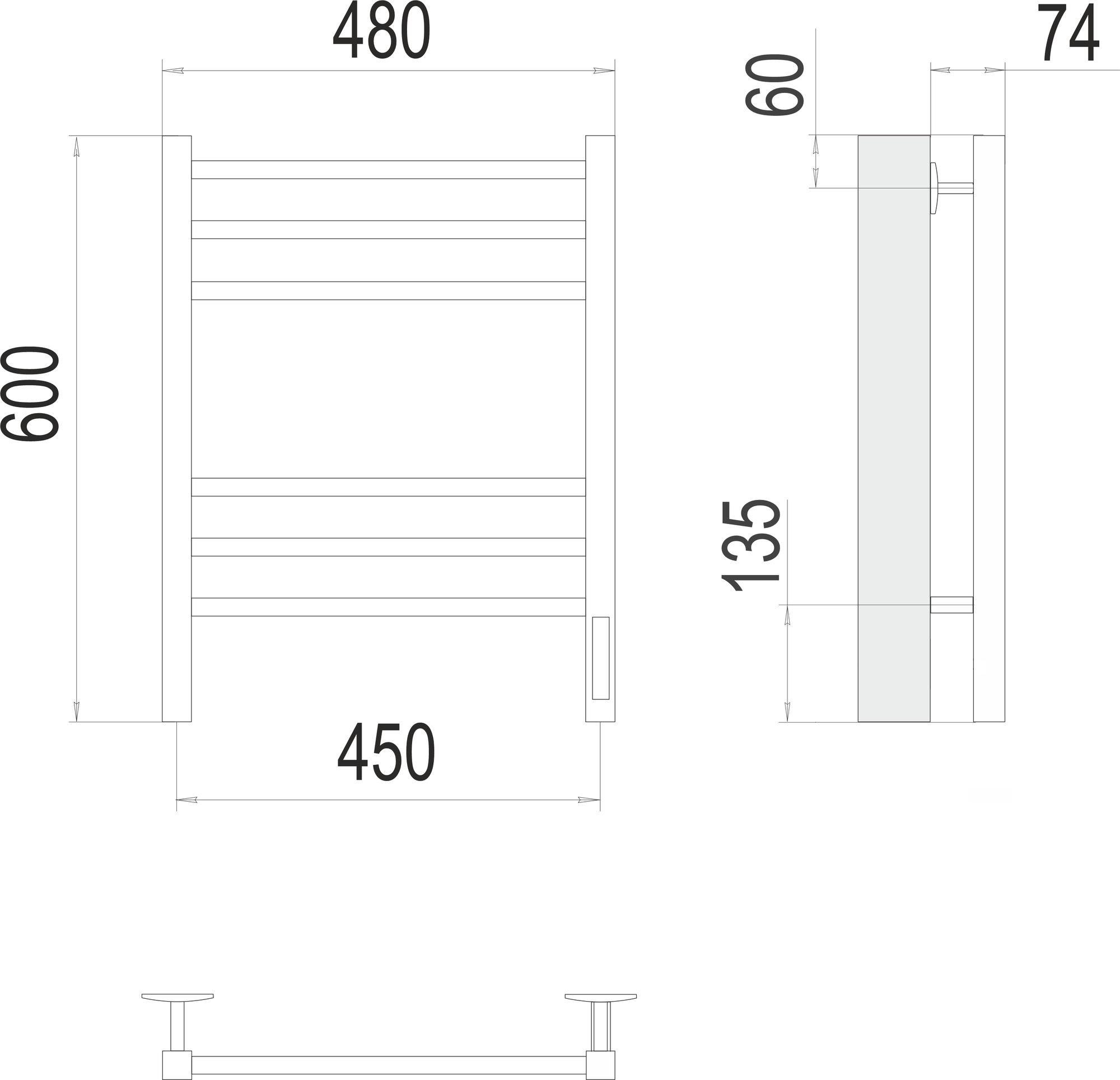 Полотенцесушитель TERMINUS Ното П6 (ШВ:500х650) электро, нерж. сталь, quick touch