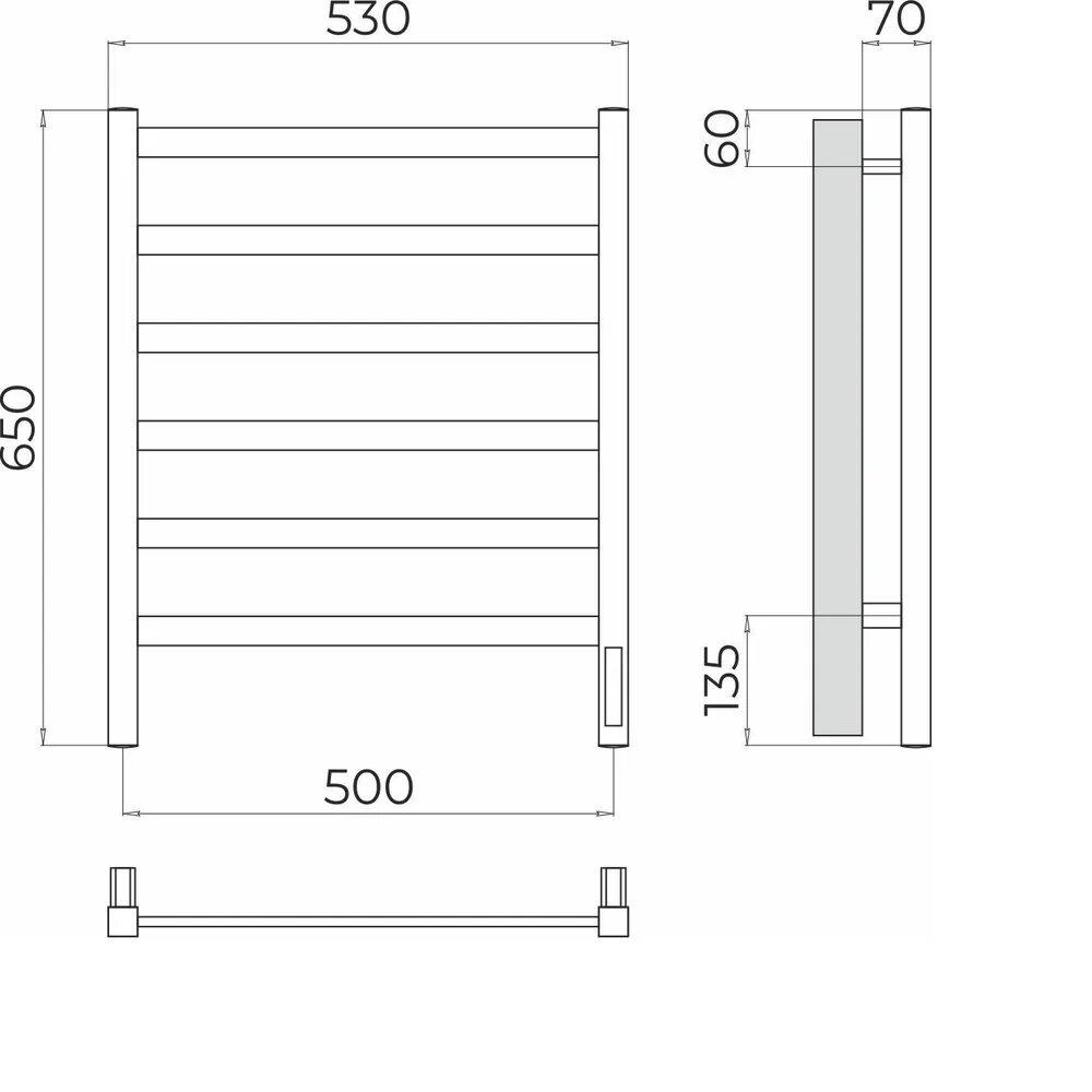 Полотенцесушитель TERMINUS Ното П6 (ШВ:500х650) электро, нерж. сталь, quick touch