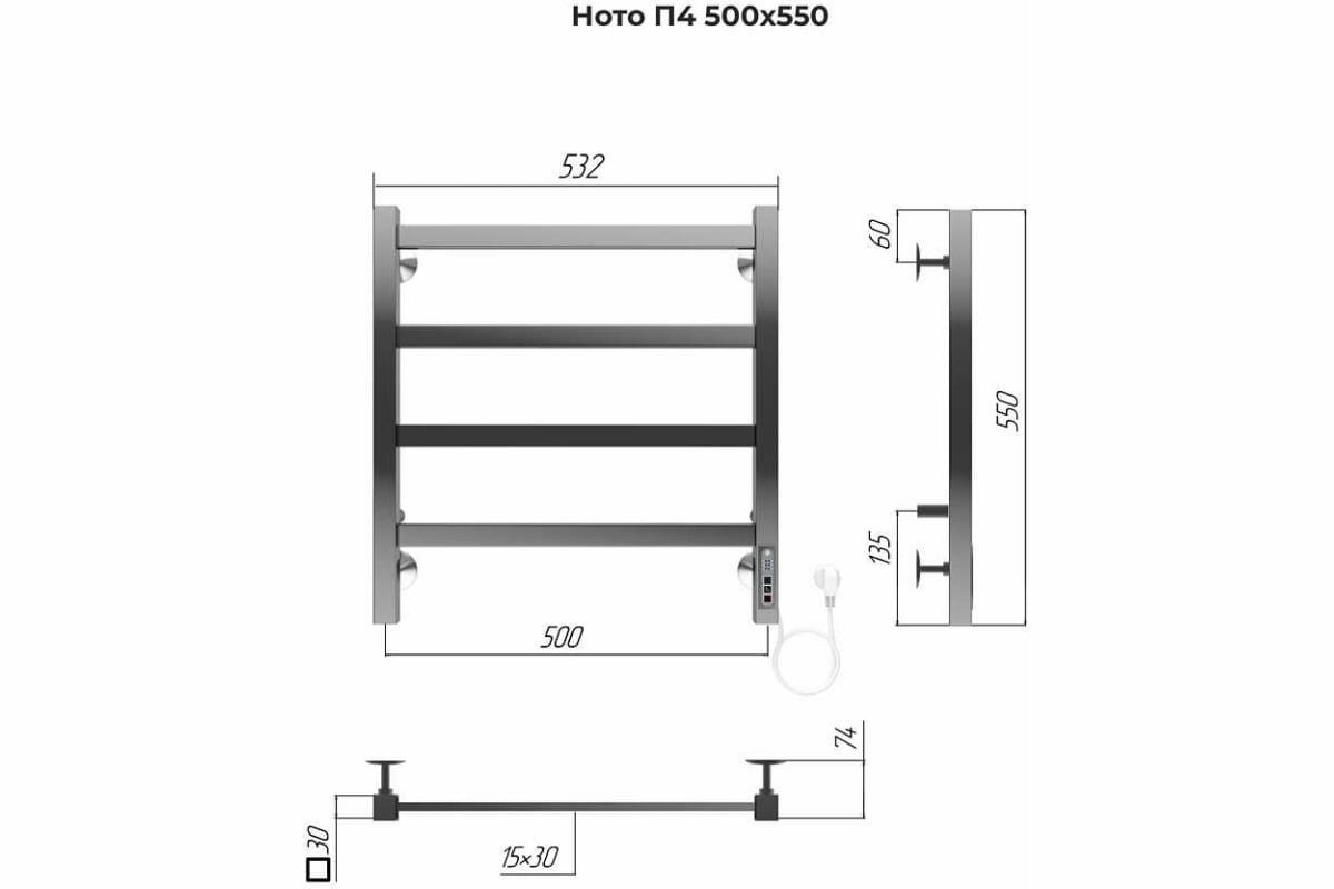 Полотенцесушитель электрический с терморегулятором TERMINUS (Терминус) Ното П6 500х650 мм, сверхпрочная пищевая нержавеющая сталь, диммер 5-ого поколения Quick Touch, гарантия 5 лет