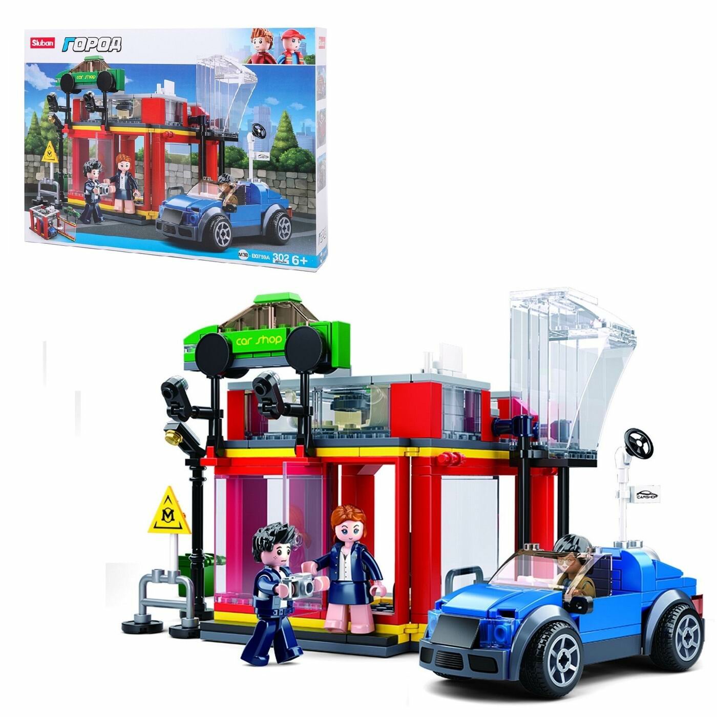 Конструктор Sluban серия "Город", Автосалон, 302 детали (M38-B0759A)
