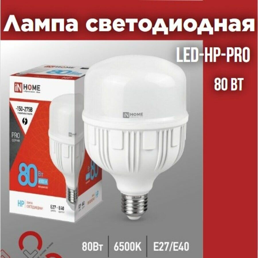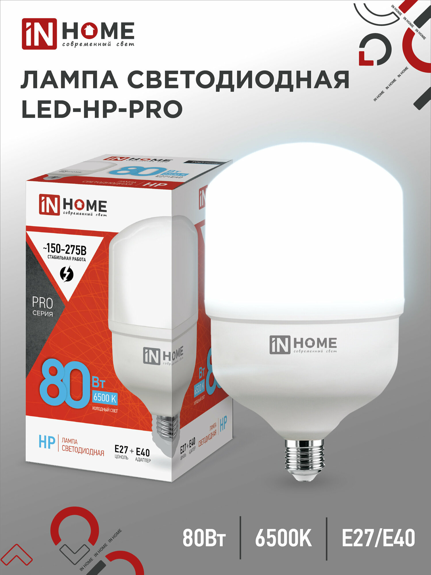 Лампа светодиодная IN HOME LED-HP-PRO, 80 Вт, 230 В, E27, с адаптером, Е40, 6500 К, 7600 Лм