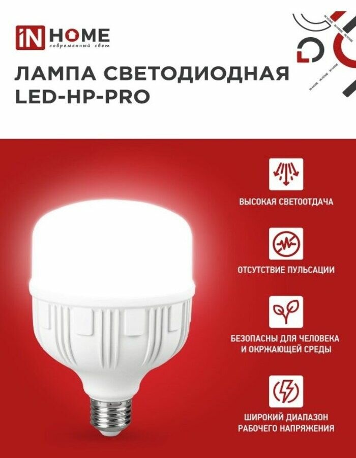 IN Home Лампа сд Led-hp-pro 80Вт 230В E27 с адаптером Е40 6500К 7200Лм 4690612031149 .