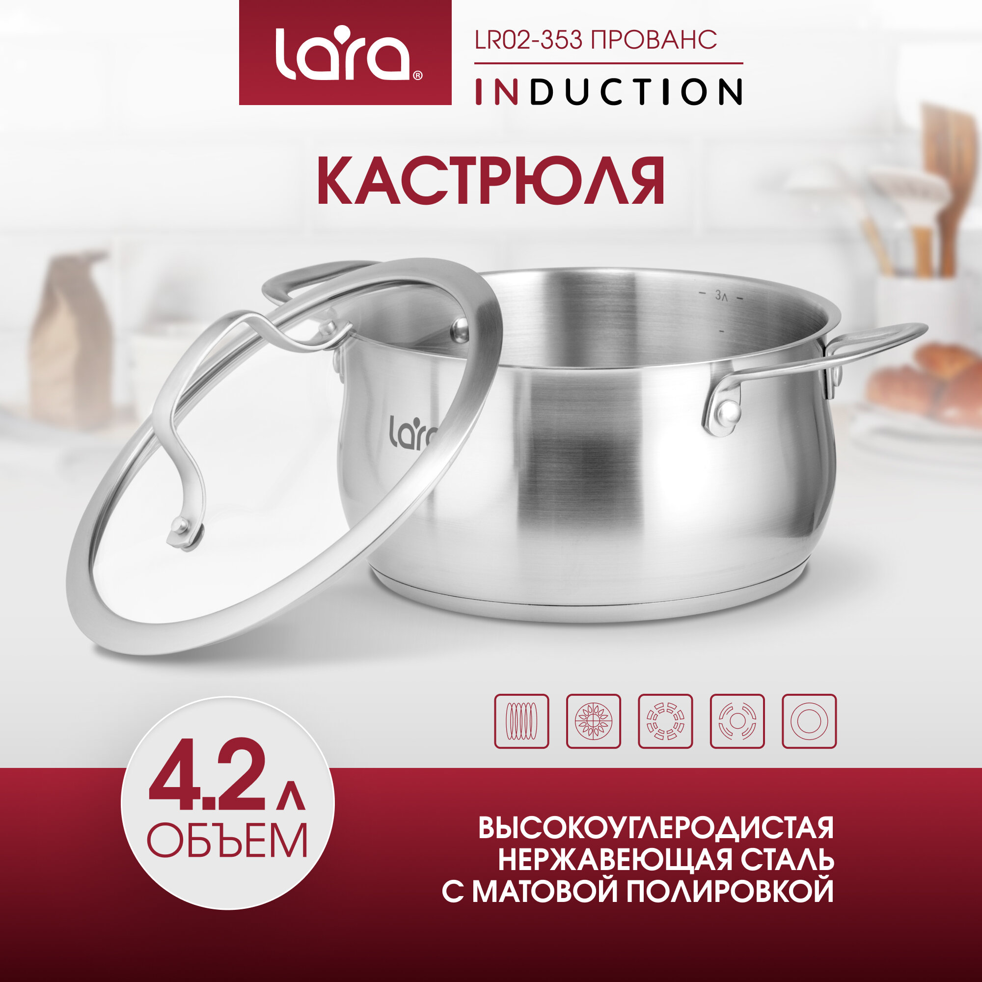 Купить LARA 4680353012927 Кастрюля LARA LR02-353 серия прованс (нерж) 22x11см 4.2л, индукционное дно, крышка