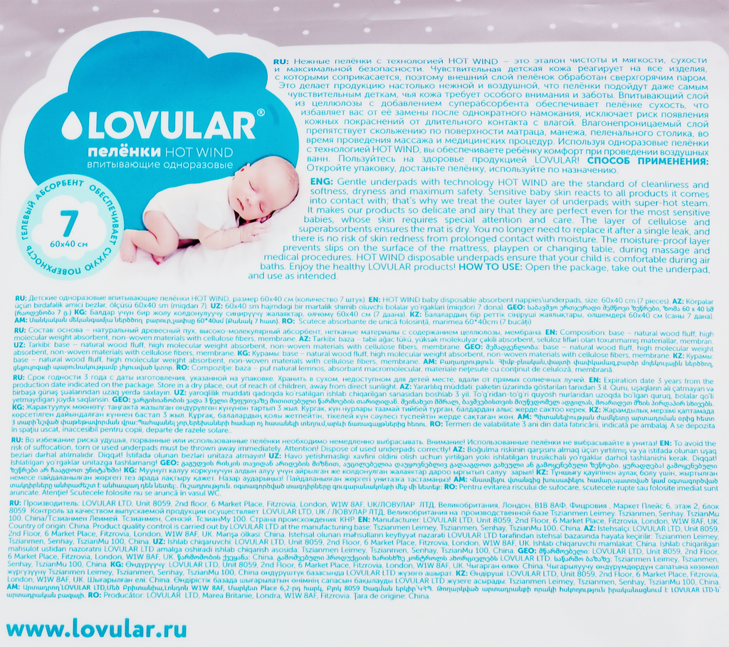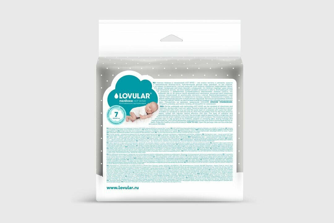 Пеленки впитывающие LOVULAR Hot Wind одноразовые 60*40см 7шт интересное: