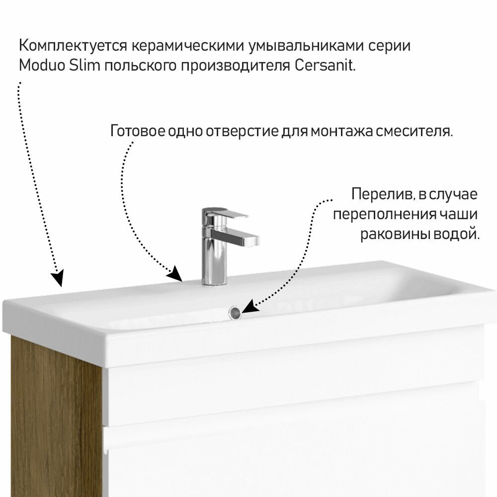 Тумба с раковиной в ванную 60 см, дуб балтийский Aqwella Smart SRT0106DB+UM-MOD60SL/1
