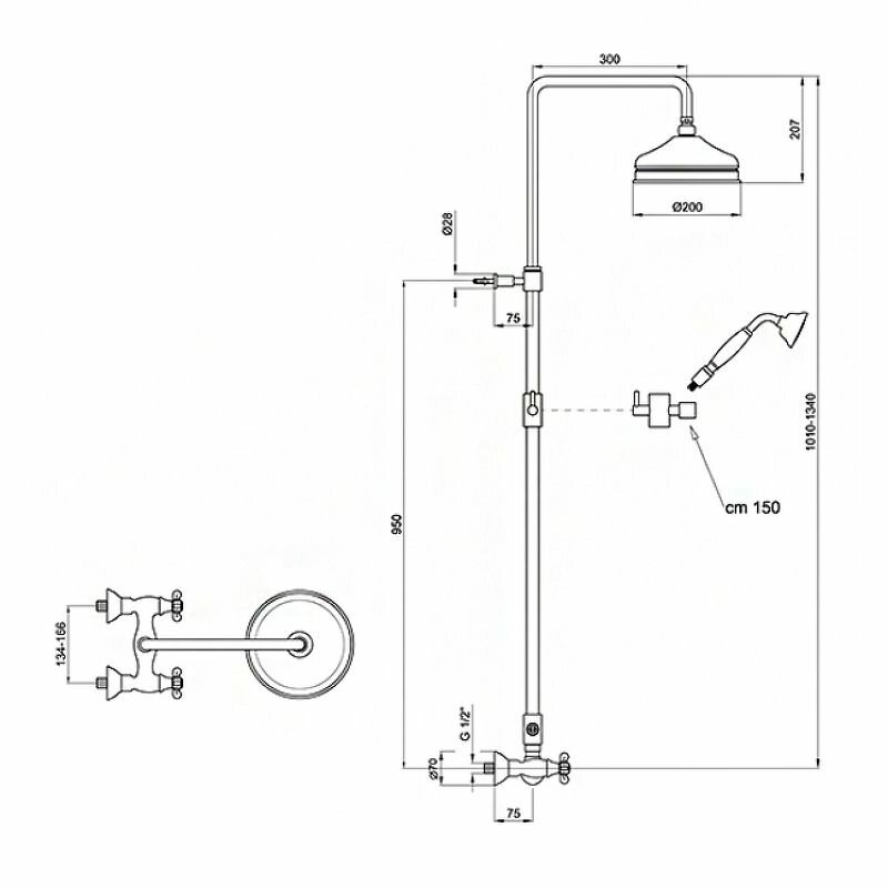| Дополнительная информация | высота стойки для душа: 1250 мм; диаметр верхнего душа: 210 мм |