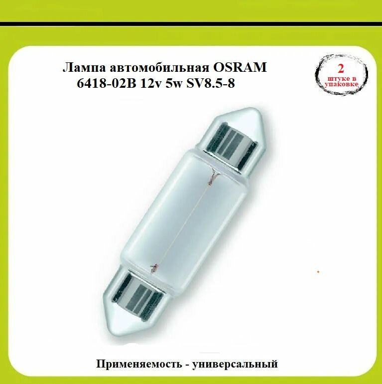 Автолампа накаливания OSRAM 6418 02B SV8 5 8