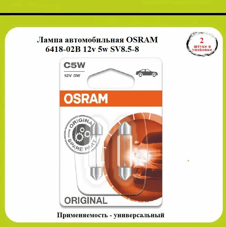 OSRAM 6418-02B Лампа 12V C5W 5W OSRAM ORIGINAL LINE . блистер 6418-02B
