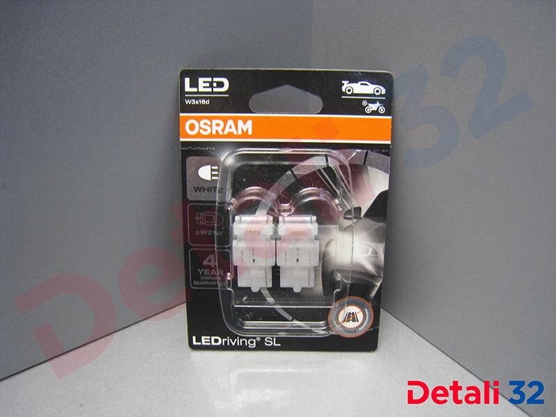 Лампа автомобильная Osram Cool White LEDriving SL W21W 12V-LED (W3x16d) 6000K 2,0W, 3 пок. бл.2шт, 7505DWP-02B