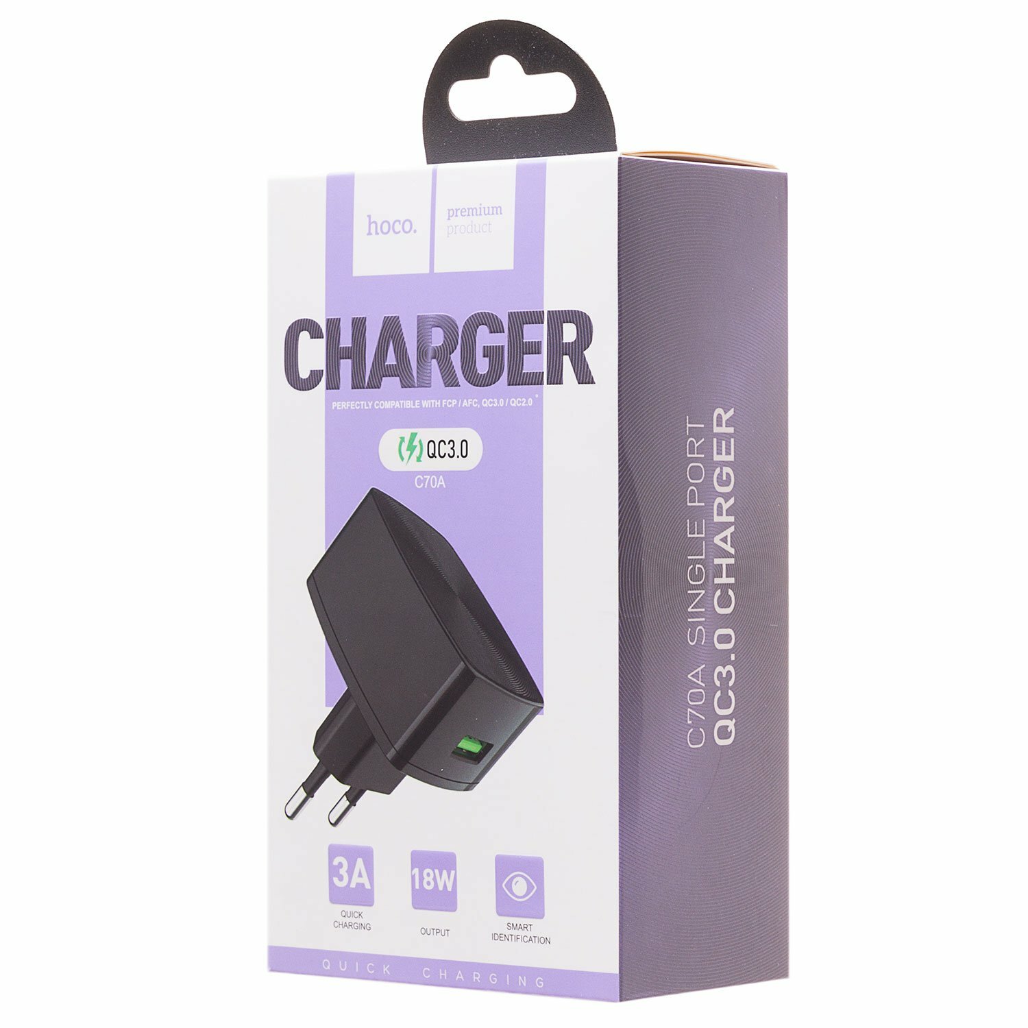Сетевое зарядное устройство (СЗУ) Hoco C70A Cutting-edge QC 3.0 (USB) 3 А, черный