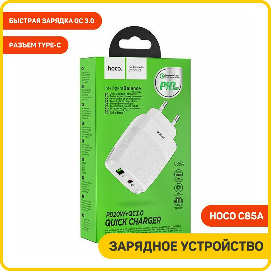 Купить Сетевое зарядное устройство C85A на USB+ Type-C PD20W QC 3.0 HOCO белый