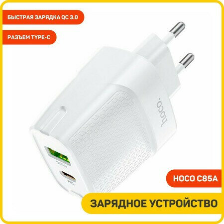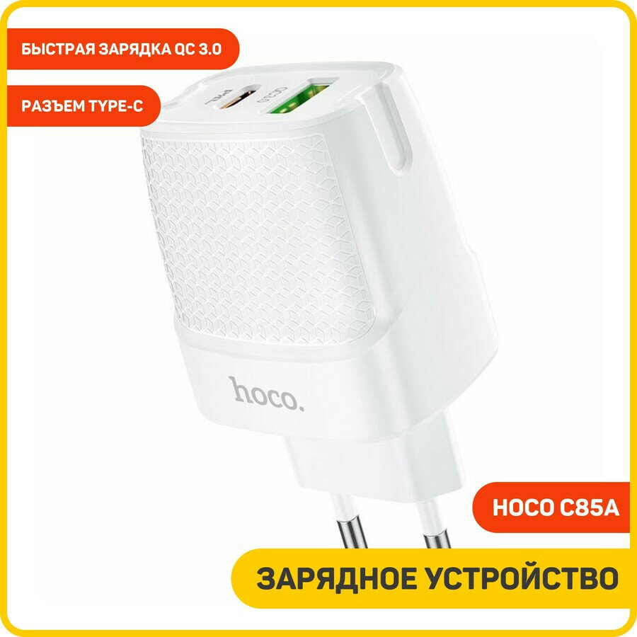 Сетевое зарядное устройство (СЗУ) Hoco C85A QC3.0 (USB+Type-C PD) 3 А, белый