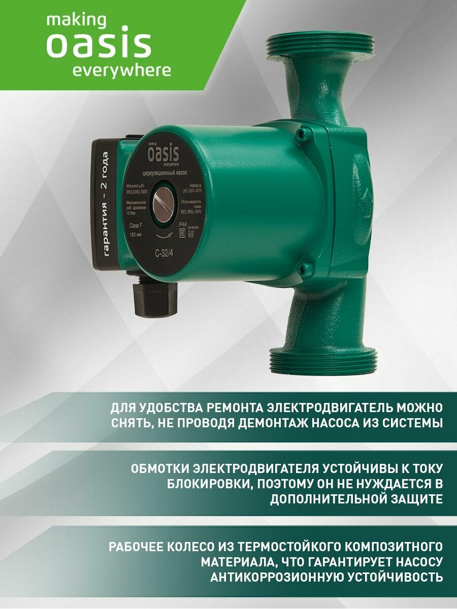 СохранитьНасос циркуляционный для отопления making Oasis everywhere C-32/4, 72 Вт, напор 4 м, 40 л/мин интересное: