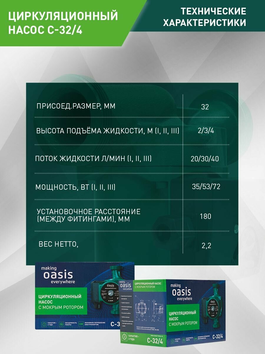 Купить Насос циркуляционный для отопления making Oasis everywhere C-32/4, 72 Вт, напор 4 м, 40 л/мин