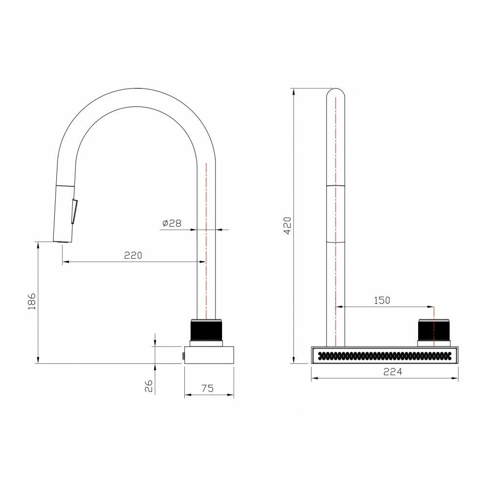 Смеситель для кухни с вытяжной лейкой и каскадным душем Milacio Ultra MCU.556. GM сталь воронёная