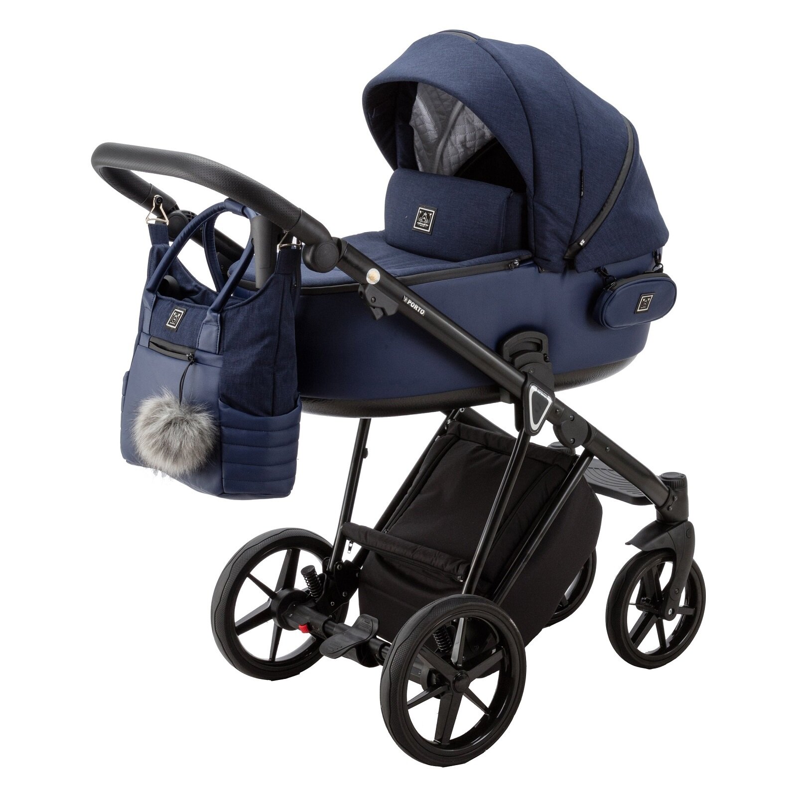 Коляска универсальная Adamex Porto LUX 2 в 1, PO-PS64 - Синий, синяя экокожа интересное: