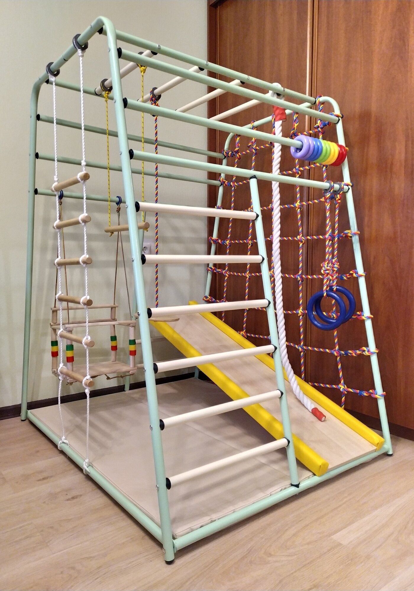 Детский спорткомплекс Вертикаль Весёлый Малыш NEXT (фисташковый) горка мягкий бортик