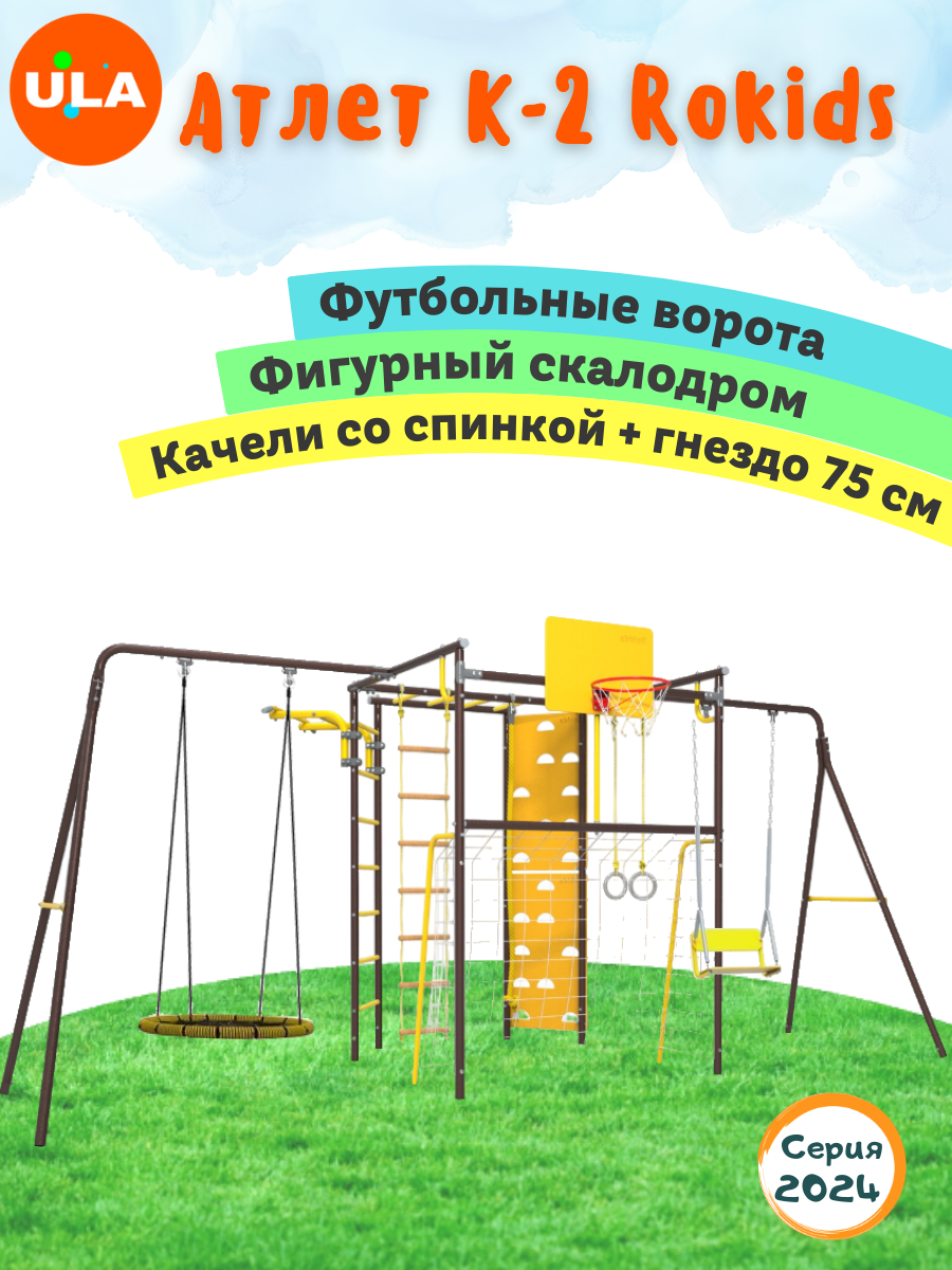 Сохранить«УДСК-7.3 Атлет-К2» Rokids, цвет: Шоколад, ступени: противоскользящие, качели: со спинкой и гнездо 75 интересное: