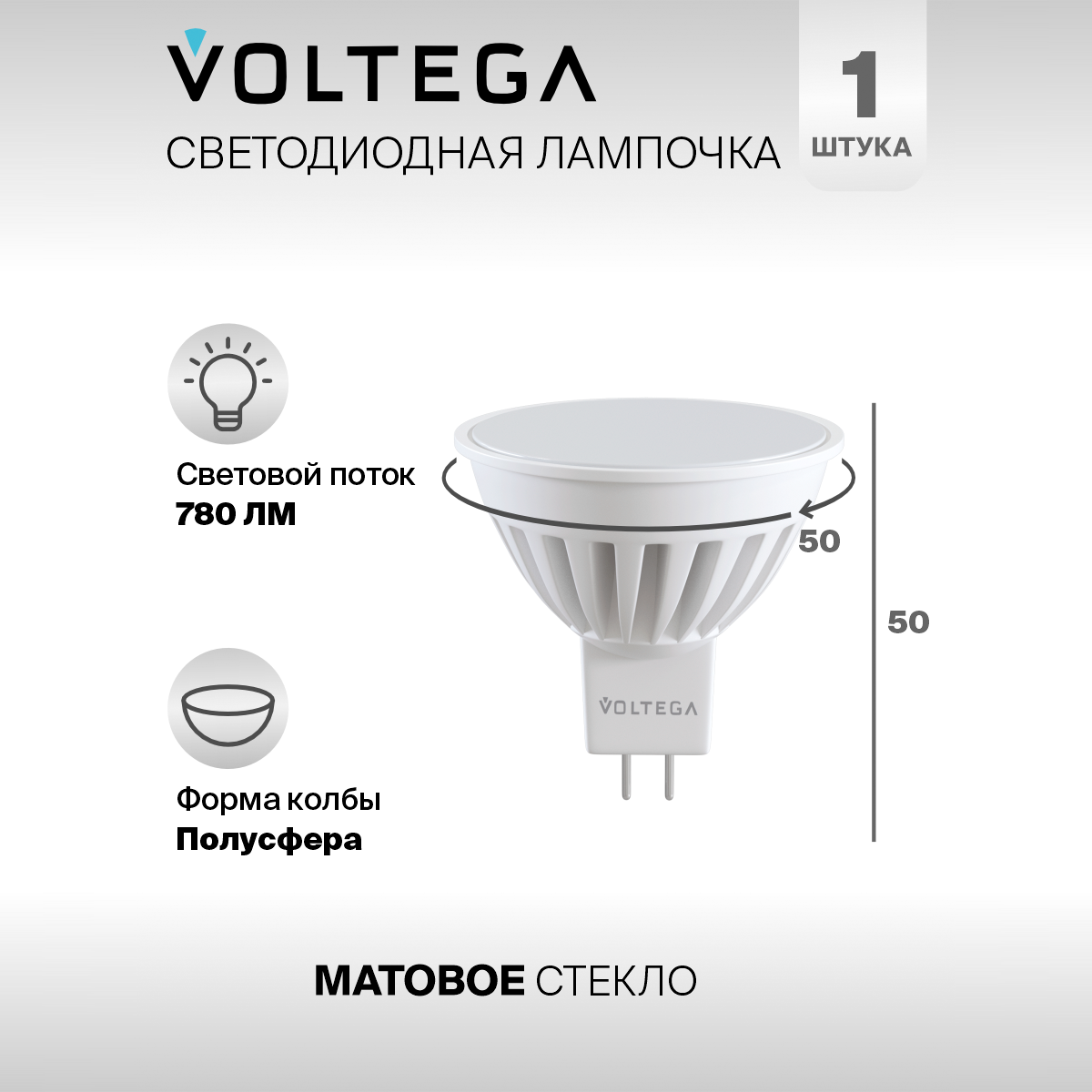 Лампочка светодиодная 2800K 780Lm GU5.3x10W Voltega Ceramics 7074