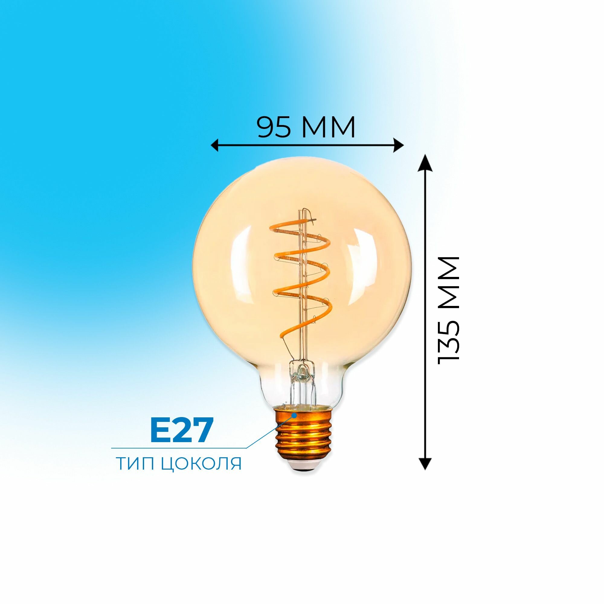 Gauss Лампа Filament G95 6W 360lm 2400К Е27 golden flexible LED