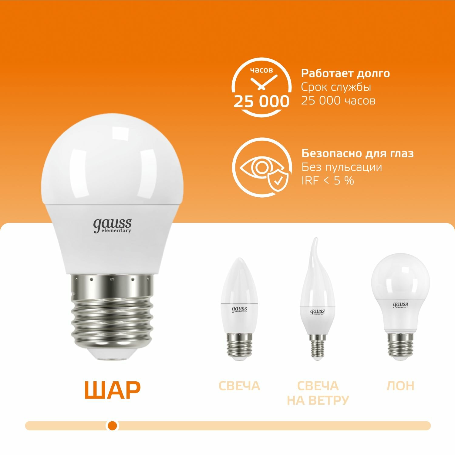 лампочка Gauss Elementary шар 6W E27 3000K 53216 ЛОТ 10 шт