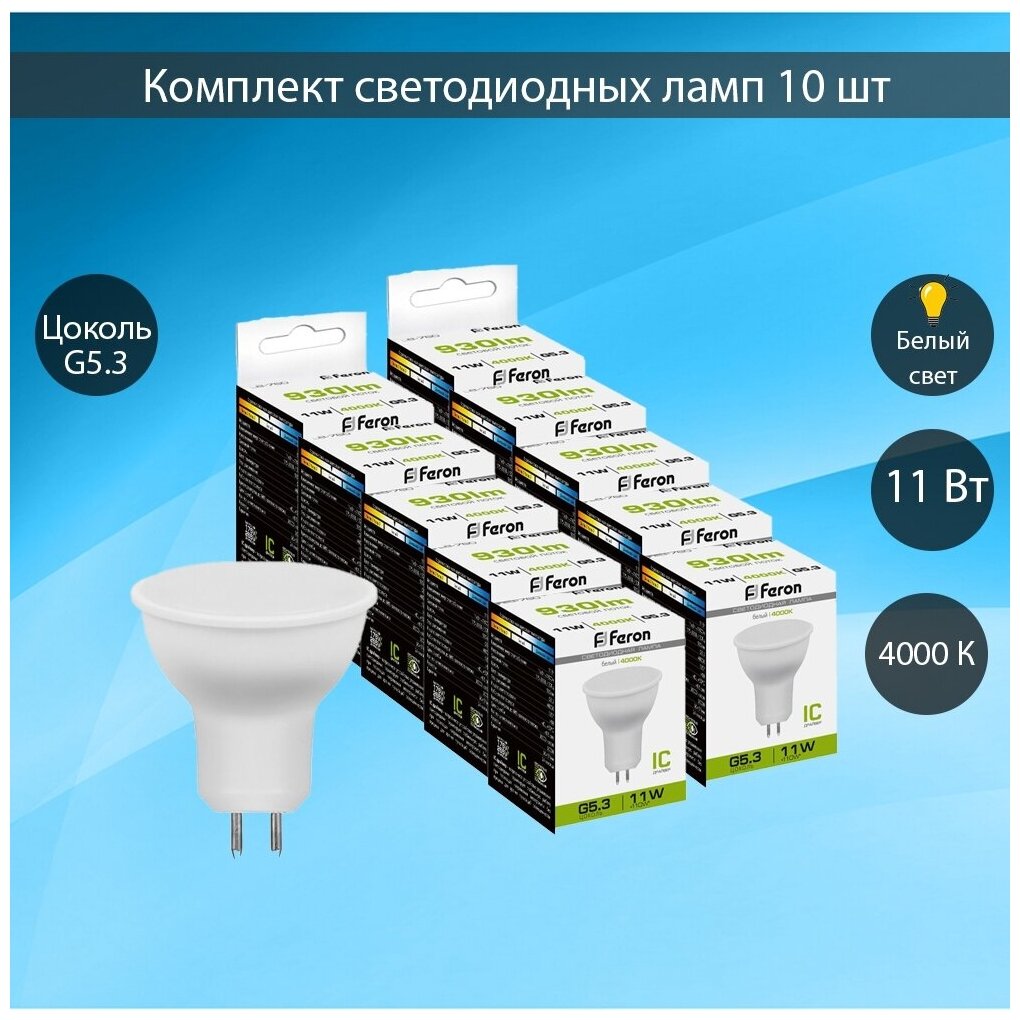 Лампа светодиодная Feron G5.3 11W 6400K матовая LB-760 10 штук В комплекте
