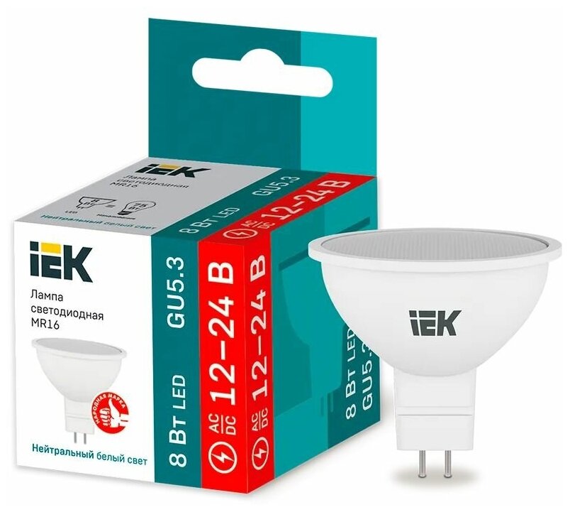 IEK Лампа LED MR16 софит 8Вт 12-24В 4000К GU5,3 LLE-MR16-08-12-24-40-GU5