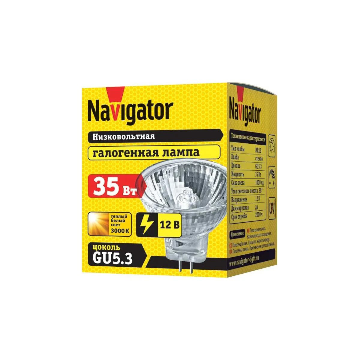 Купить Лампа Navigator, галогеновая, 3000К, GU5.3 MR16, 35 Вт, 12В, теплый белый свет