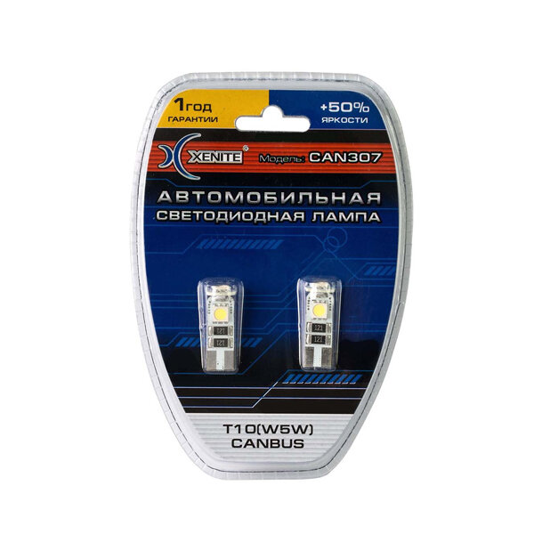 XENITE 1009304 1009304_лампа светодиодная! 12V Т10 W2.1x9.5d W5W CANBUS Can307 (Яркость +50%) блистер \