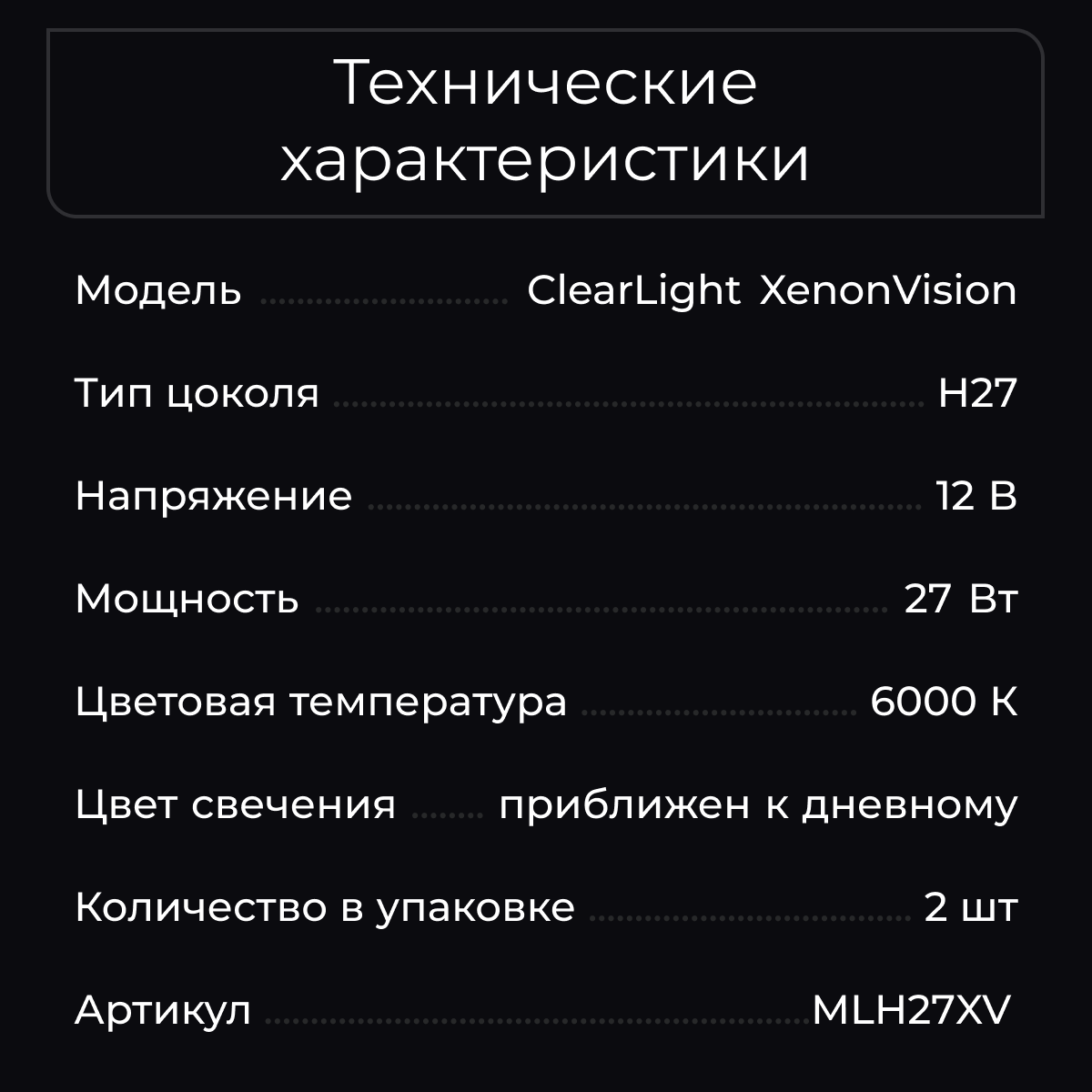 Галогенные лампочки H27 Clearlight XenonVision 6000K 12V-27W 2шт интересное: