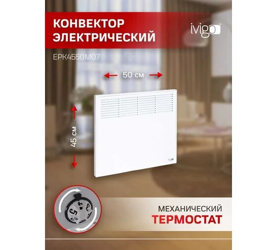 Конвектор IVIGO EPK4550M07 white/механический , 750Вт, 4-9м2, белый