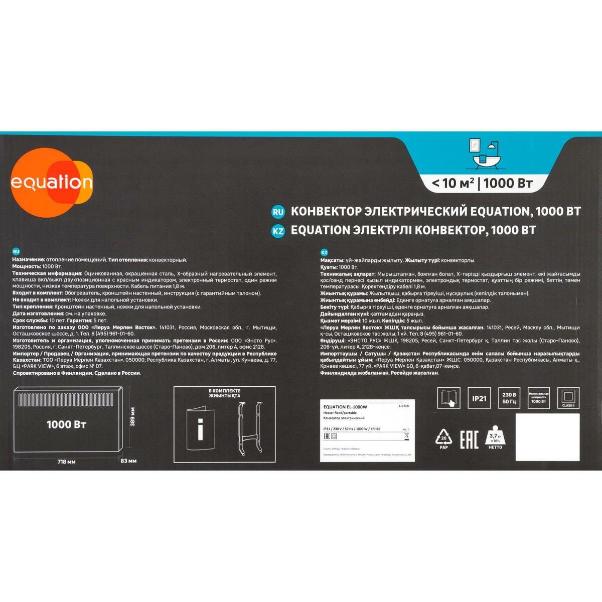 EQUATION LM/LCM-2000 конвектор с механическим термостатом 2000Вт / EQUATION LM/LCM-2000 обогреватель конвекторный с механическим термостатом 2000Вт