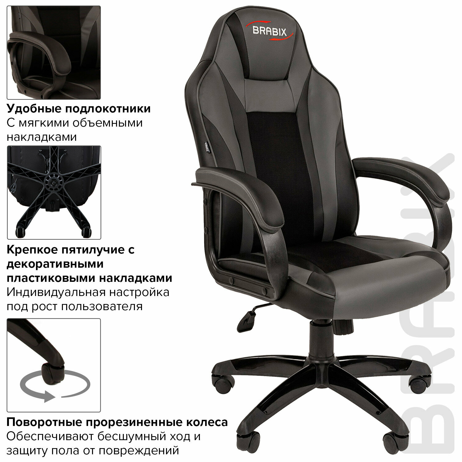 Кресло компьютерное BRABIX Tanto GM-171, TW/экокожа, черное/серое (532574)