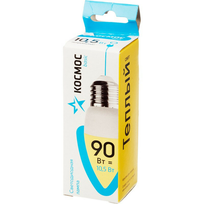 Купить Светодиодная лампа Космос, 10.5 Вт, E27, 3000 K, свеча, LED10.5wCNE2730, теплый белый