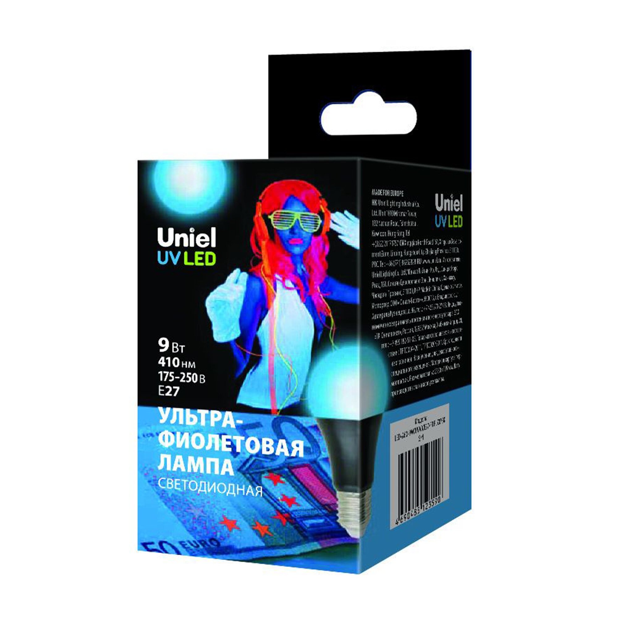 Uniel Led-a60-9w/uvad/e27/fr Plz07bk Лампа светодиодная ультрафиолетовая для дискотек UL-00005855 .