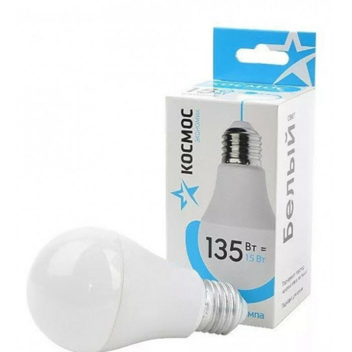 Купить Светодиодная лампа Космос, 15 Вт, Е27, 6500 K, груша, LED15WA60E2765, холодный белый