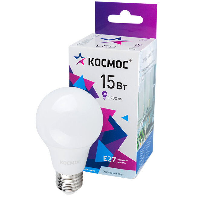 Лампа светодиодная КОСМОС LED15wA60E2765, E27, A60, 15 Вт, 6500 К