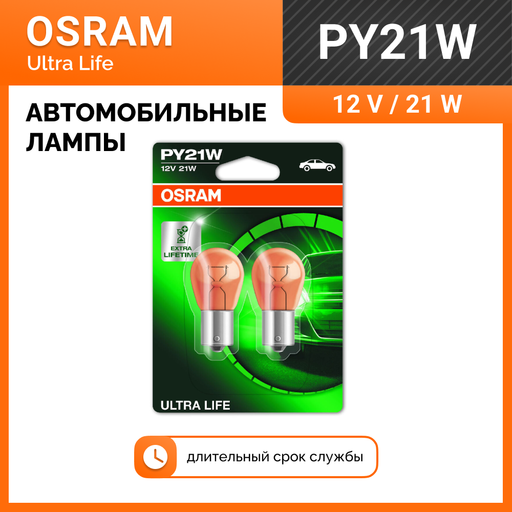 OSRAM 7507ULT-02B Лампа 12V PY21W 21W BAU15s OSRAM ULTRA LIFE 2 шт. блистер 7507ULT-02B