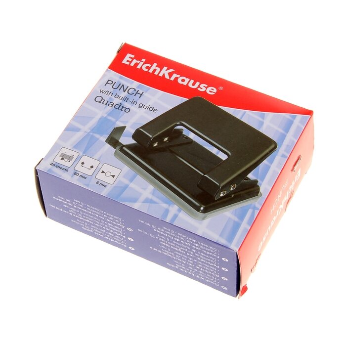Дырокол ErichKrause Quadro, до 20 листов, диаметр прокола 6 мм, расстояние между проколами 80 мм, черный интересное: