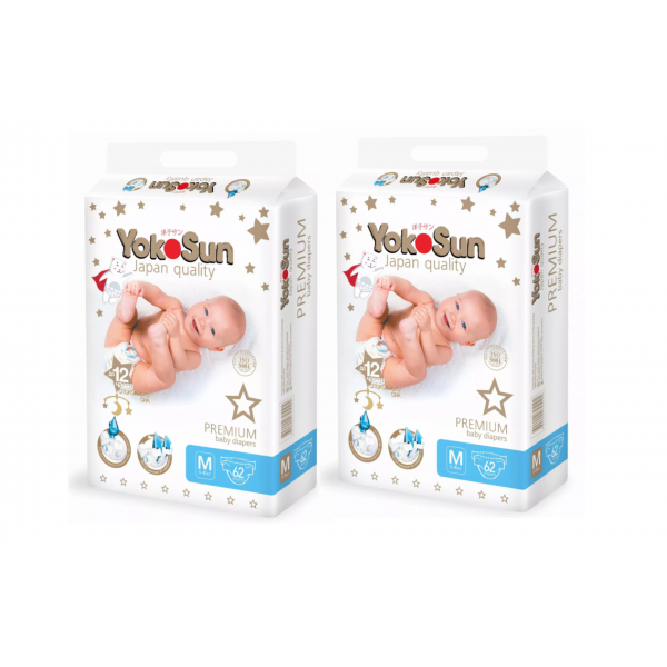 Купить Yokosun Набор 2 х Yokosun подгузники Premium M (5-10 кг) 62 шт.