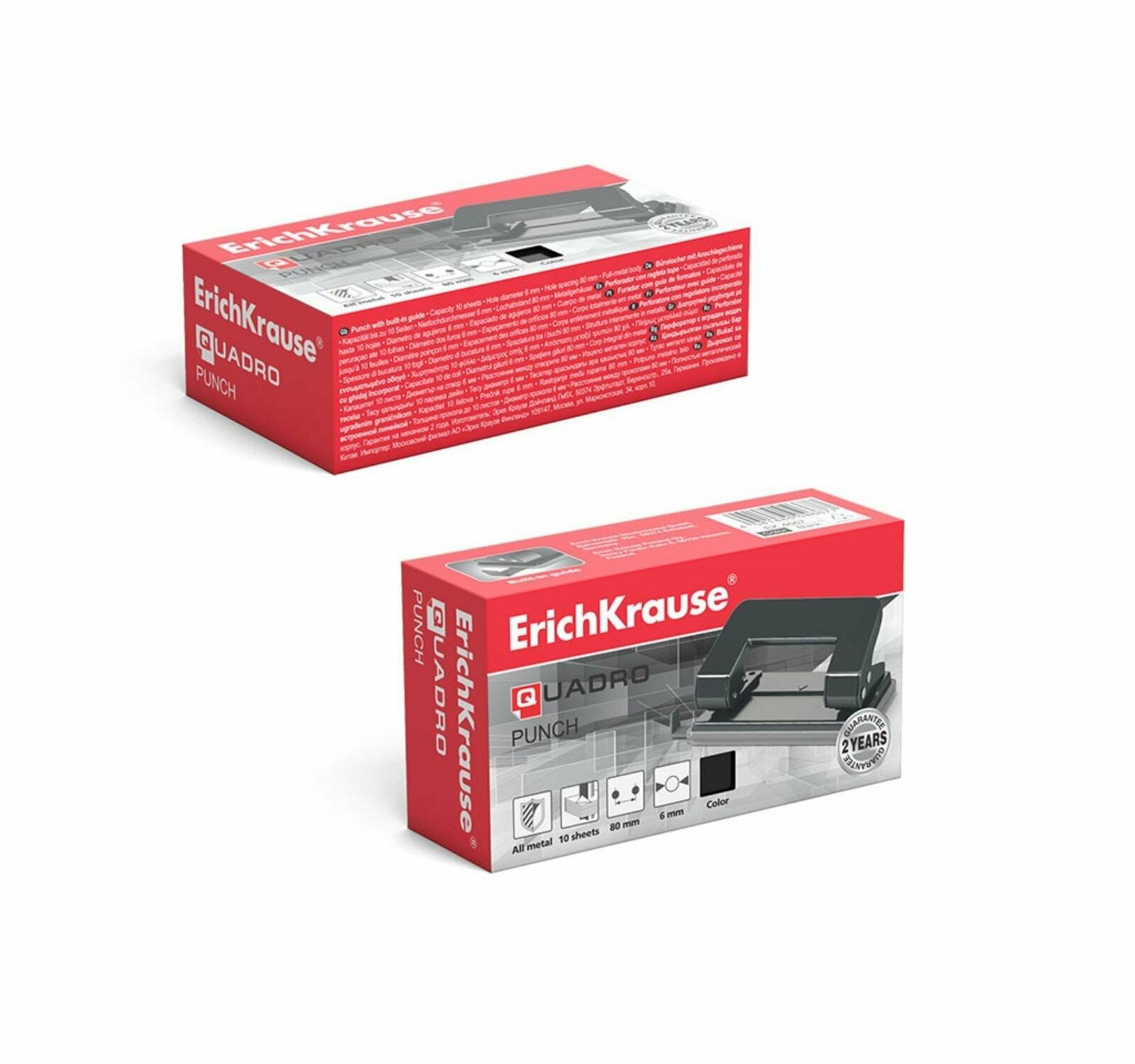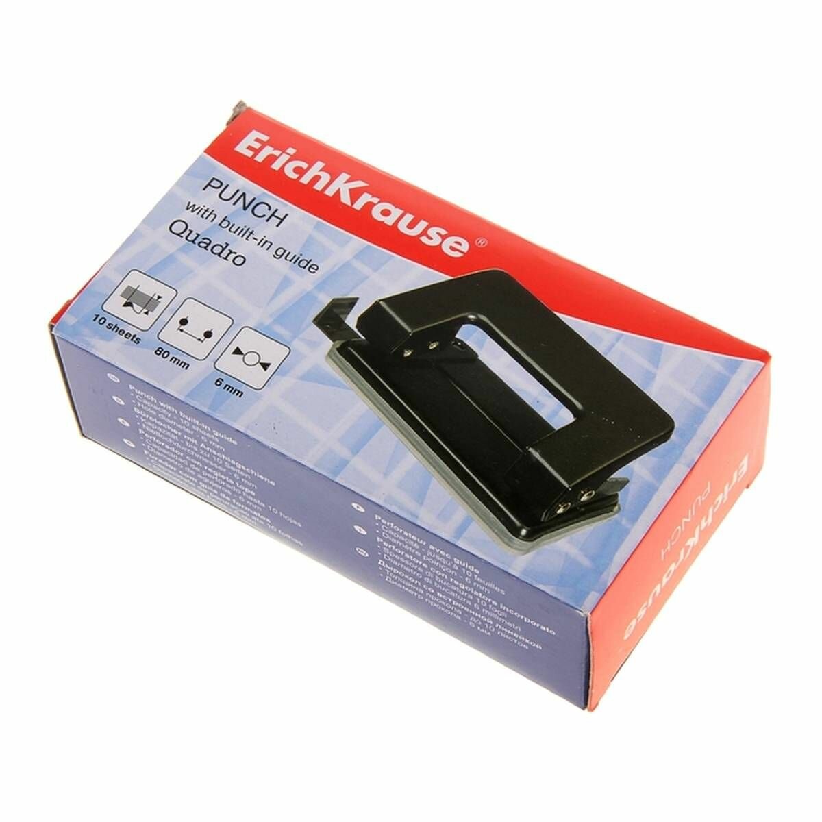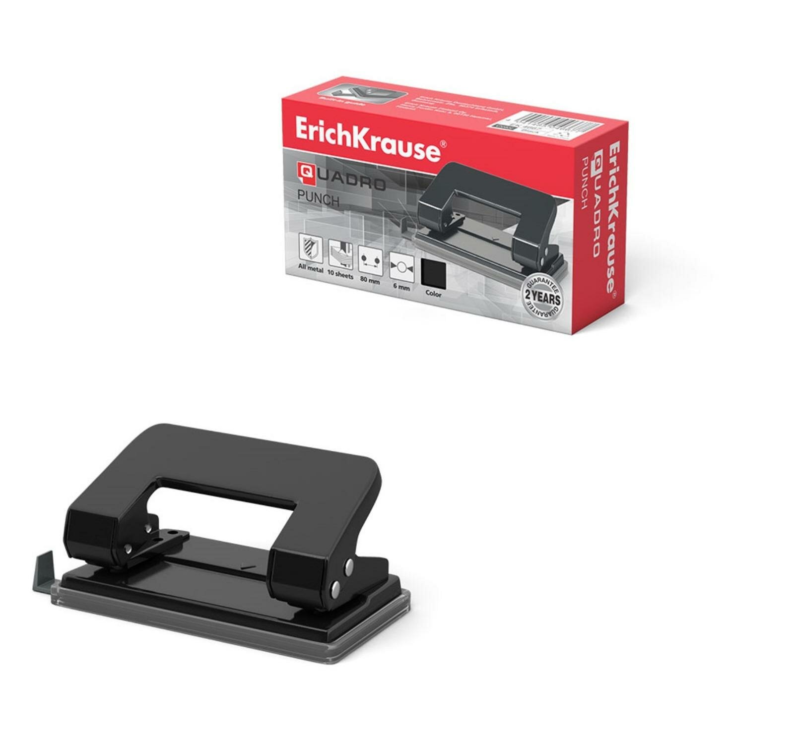 ErichKrause Дырокол ErichKrause Quadro, до 10 листов, диаметр прокола 6 мм, расстояние между проколами 80 мм, чёрный