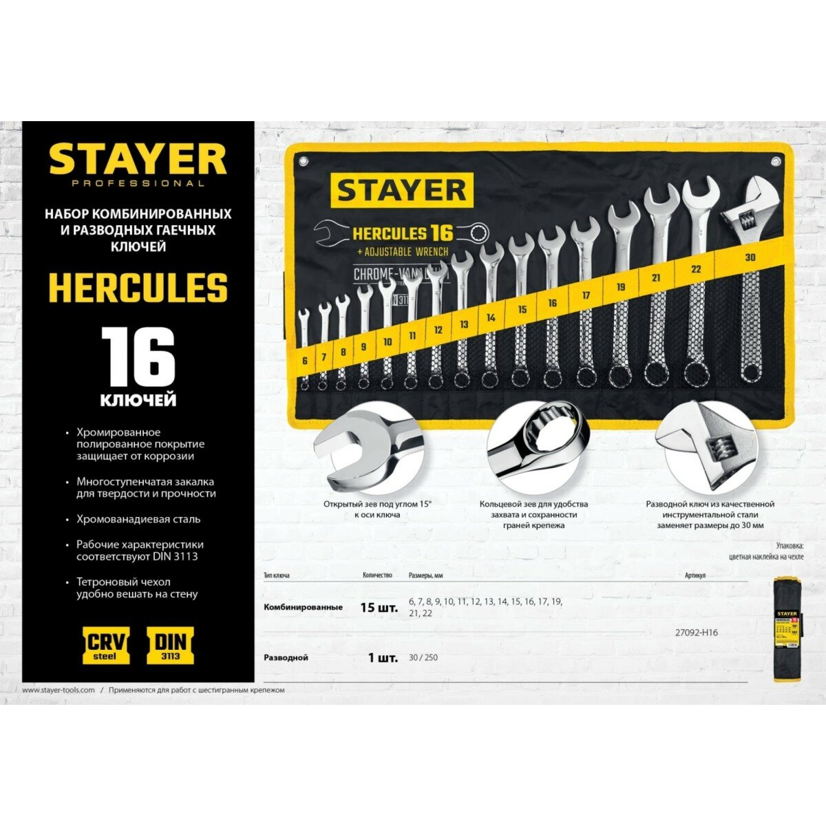 STAYER Набор комбинированных и разводных гаечных ключей 16 шт, 6 - 30 мм, STAYER HERCULES, ( 27092-H16 )