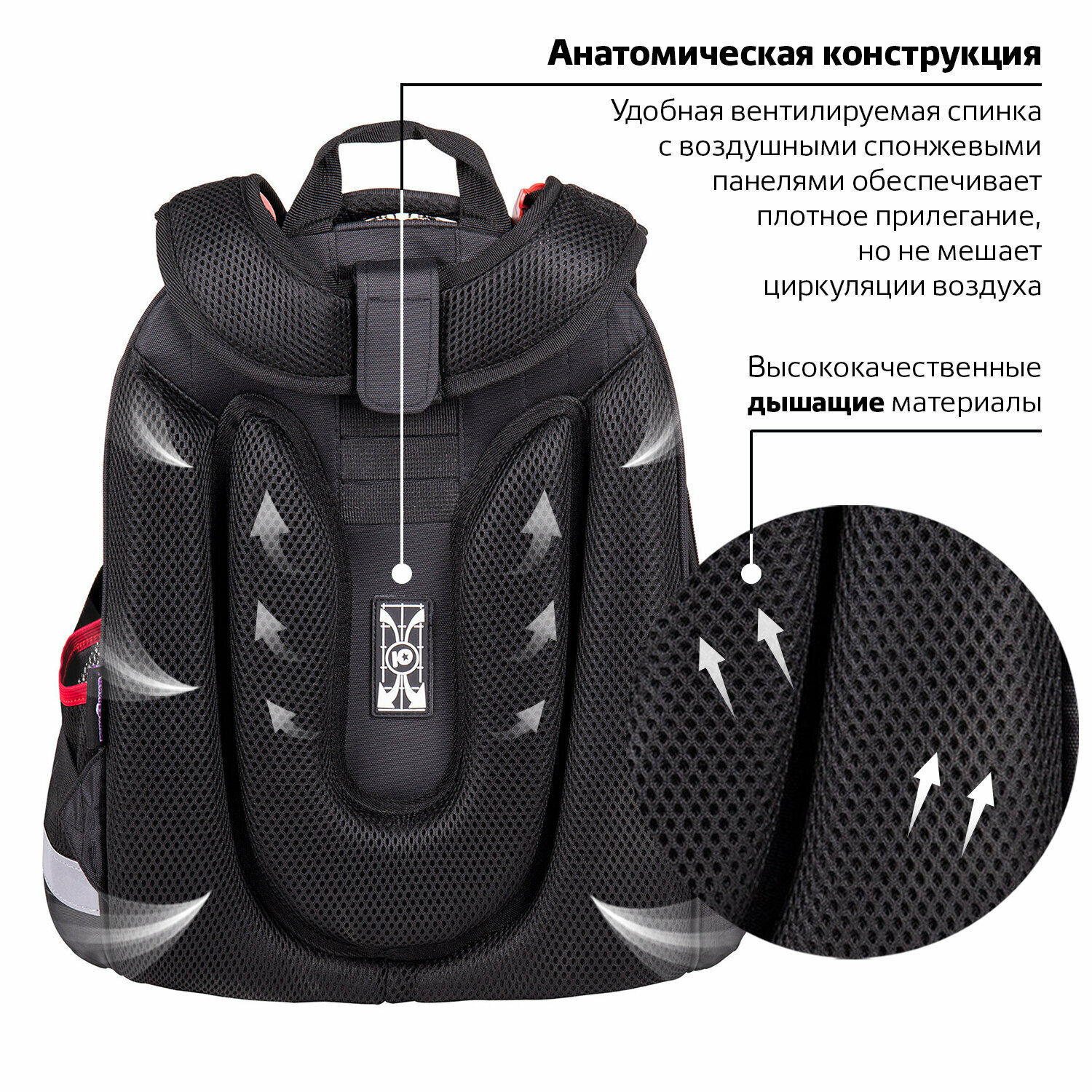 | Особенности | без наполнения / вентилируемая спинка / вентилируемые лямки / грудная стяжка / ножки / разделитель в главном отделении / регулируемые лямки / ручка для переноски / светоотражающие элементы / увеличение объема |
